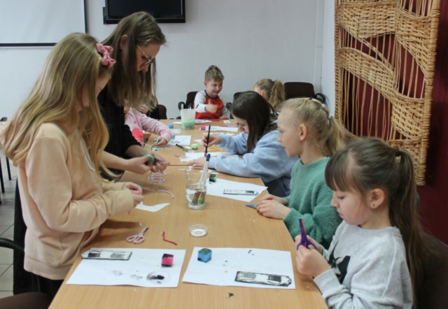 19 lutego 2025 r. w ramach ferii zimowych z Miejskim Ośrodkiem Kultury zostały zorganizowane warsztaty tworzenia zakładek do książek metodą decoupage, które poprowadziła pani Anna Seroka-Szoja. Do ich przygotowania dzieci wykorzystały drewniane tabliczki, kolorowe serwetki i sznurki oraz farby.