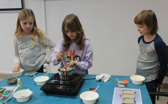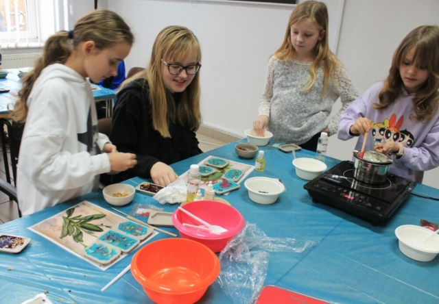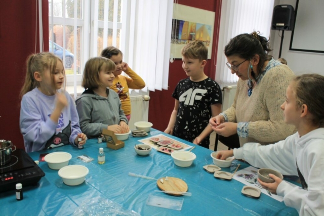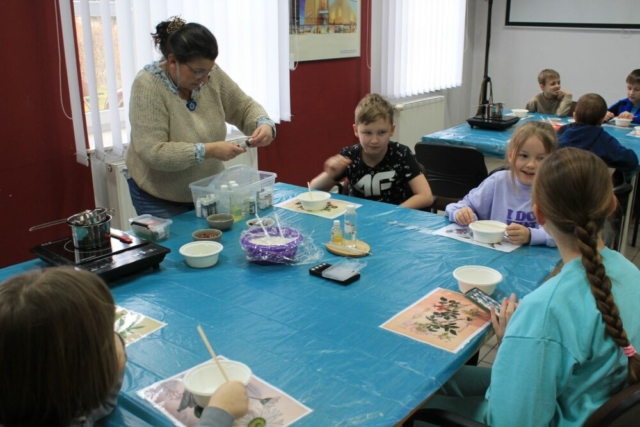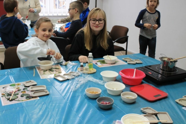 24 lutego 2025 r. w Centrum Wikliniarstwa w ramach ferii z MOK odbyły się warsztaty tworzenia zapachowych tabliczek florenckich. Podczas zajęć poprowadzonych przez panią Alicję Siciak-Śledzińską, dzieci wykonały pachnące tabliczki florenckie, a do ich przygotowania wykorzystały naturalny wosk, olejki zapachowe oraz suszone dodatki.
