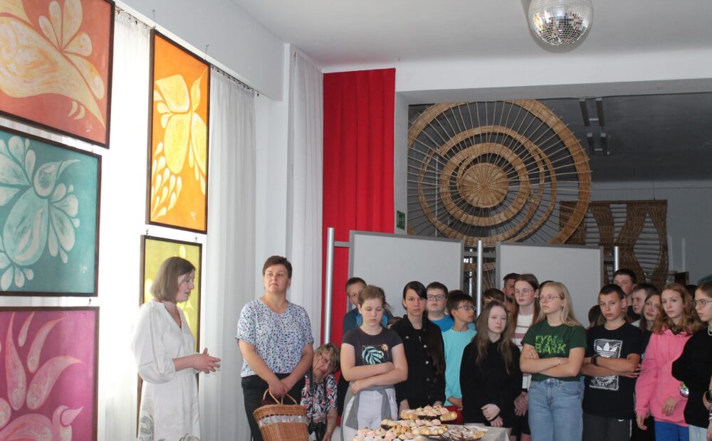 22 maja 2024 r. w Domu Kultury odbył się wernisaż wystawy batiku pt. „W wosku zaklęte” autorstwa pani Anity Ryby. Autorka prac to regionalistka, mistrz haftu i instruktor rękodzieła artystycznego. Od 23 lat zajmuje się haftem, koronką, batikiem oraz tkaniną artystyczną. Upowszechnia materialne i niematerialne lasowiackie tradycje ludowe, prowadzi warsztaty rękodzielnicze z haftu oraz koronki, a także wykonuje lasowiackie stroje ludowe. W spotkaniu wzięli udział zaproszeni goście: przedstawiciele Klubu Seniora, Towarzystwa Miłośników Ziemi Rudnickiej, Stowarzyszenia Harcerskiego „Skautfort” oraz uczniowie Publicznej Szkoły Podstawowej nr 2 w Rudniku nad Sanem wraz z p. Grażyną Freyer i p. Dawidem Krawcem. Artystka w interesujący sposób opowiadała jak powstało pięć cykli batikowych: „Ptaki i ptaszki” 2012 r., „Jesiennie” 2013 r., „Lasowiackie inspiracje” 2015 r., „Ślicznotki” 2016 r. i „Abstrakcje” – zabawa kolorem 2017 r.. Podczas spotkania zgromadzeni goście dowiedzieli się również o niezwykle pracochłonnej technice batiku, czyli malowania tkaniny woskiem.