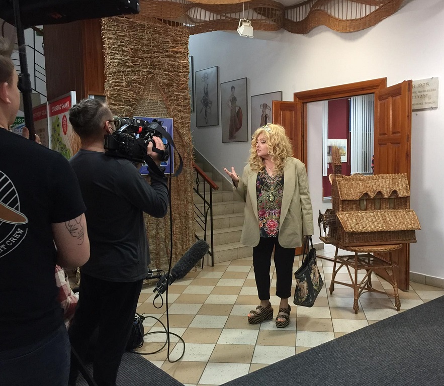 Do naszej gminy z programem „Kuchenne rewolucje” zawitała dobrze wszystkim znana restauratorka – Magda Gessler. Razem ze swoją ekipą odwiedziła także Centrum Wikliniarstwa aby przybliżyć właścicielowi i pracownikom restauracji w Przędzelu bogatą tradycję regionu. Goście mogli sporo dowiedzieć się na temat historii wikliniarstwa, którą opowiedziała im Dyrektor Miejskiego Ośrodka Kultury. Natomiast dzięki pani wikliniarz zgłębili tajniki plecionkarstwa, próbując swoich sił w wyplataniu, czego rezultatem były piękne wiklinowe kwiaty.