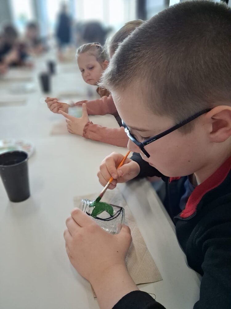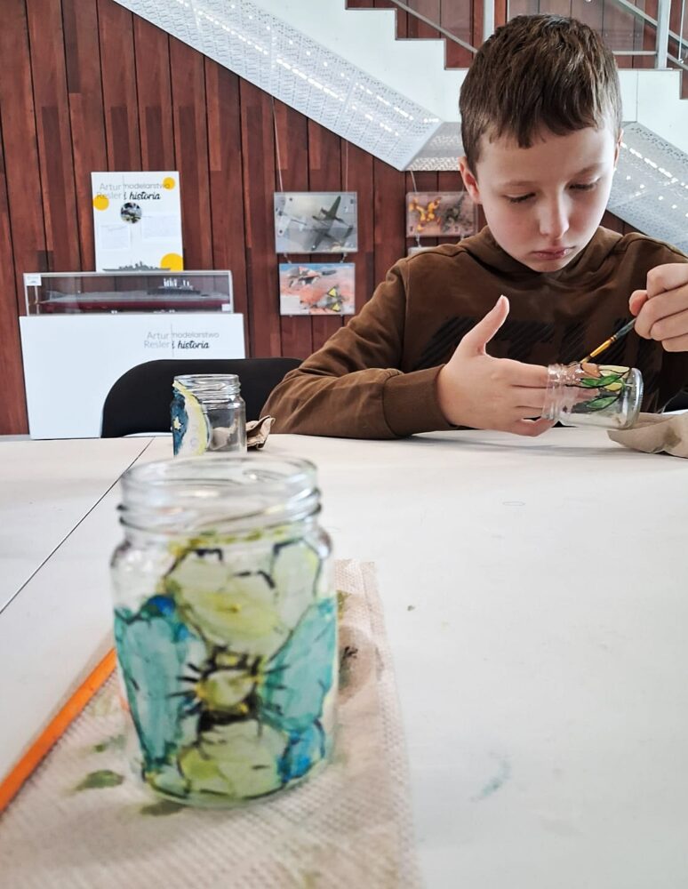 Wyjazd był nie tylko okazją do zdobycia nowej wiedzy, ale także do rozwijania kreatywności. Uczestnicy wzięli udział w warsztatach malowania na szkle, podczas których mogli własnoręcznie stworzyć wyjątkowe, kolorowe prace. Zajęcia dostarczyły wszystkim wiele radości i satysfakcji, a wykonane dzieła stały się piękną pamiątką z wyjazdu.