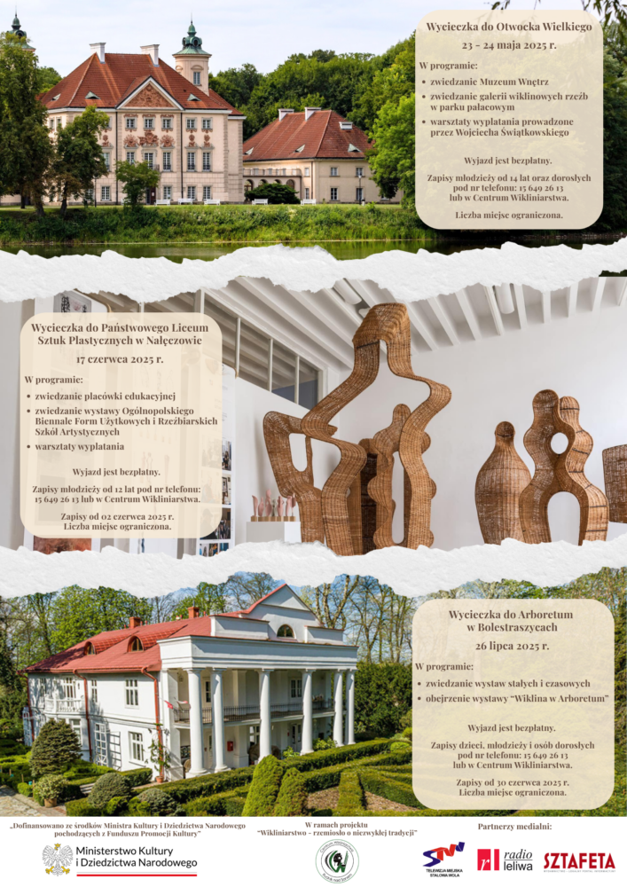 🌿 🚌 W ramach projektu „Wikliniarstwo – rzemiosło o niezwykłej tradycji” organizujemy wyjazdy studyjne do ośrodków związanych z wikliniarstwem – Otwocka Wielkiego, Nałęczowa i Bolestraszyc.