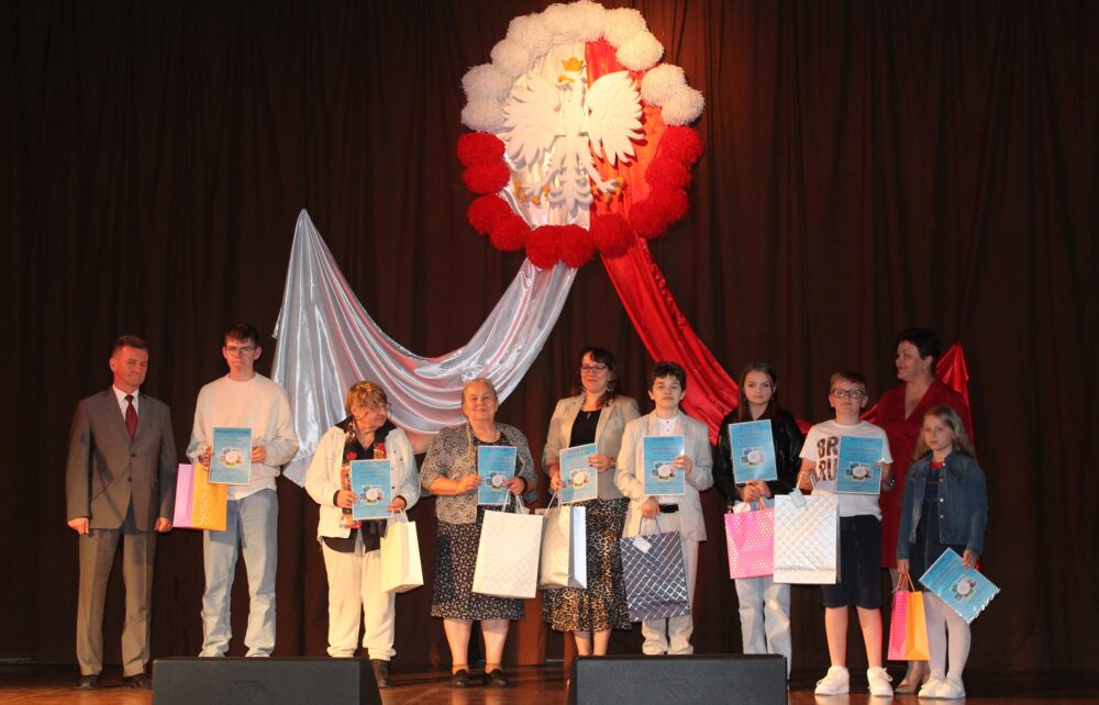 Nagrody na scenie Domu Kultury wręczyli pan burmistrz Tadeusz Handziak oraz dyrektor MOK Anna Straub.