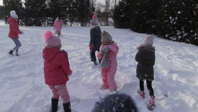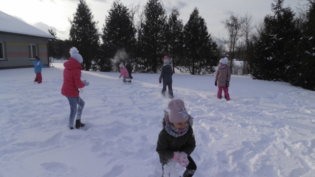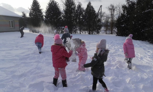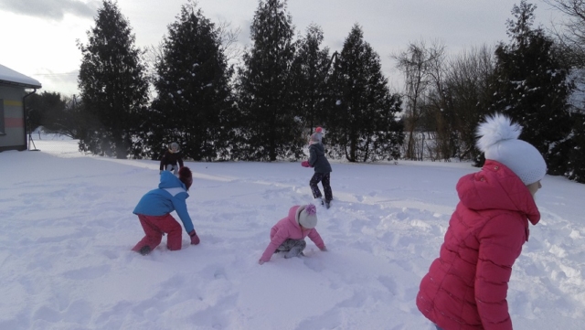4.02.2021r. dzieci wzięły udział w grach i zabawach na świeżym powietrzu na dziedzińcu Filii bibliotecznej w Kopkach. Dzieci nauczyły się przestrzegania reguł gier i zabaw ruchowych. Zagrały w berka z szalikami, rzucały się śnieżkami oraz zrobiły aniołki na śniegu. Po zakończeniu zabaw na śniegu w bibliotece czekały na nich ciepła herbata oraz quizy i zagadki zimowe.