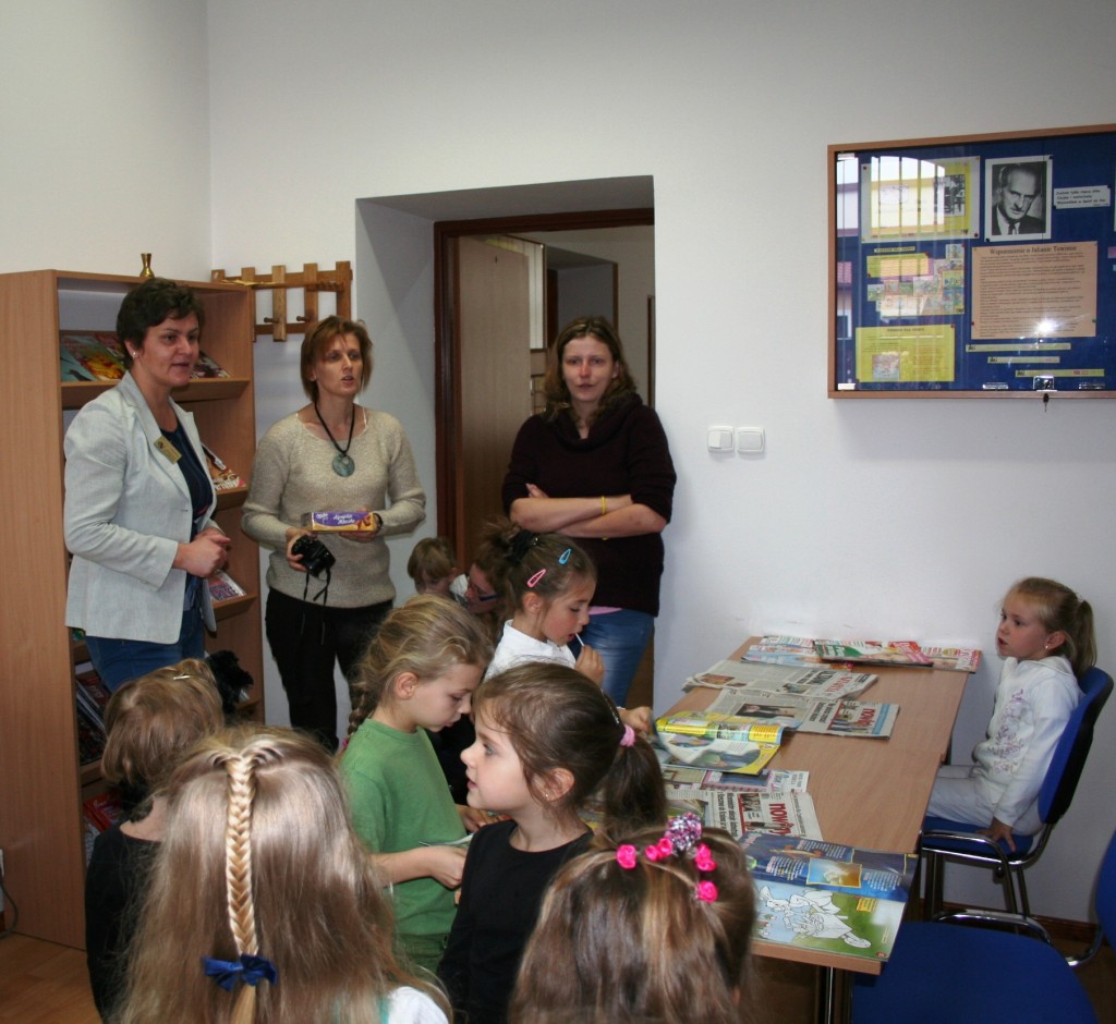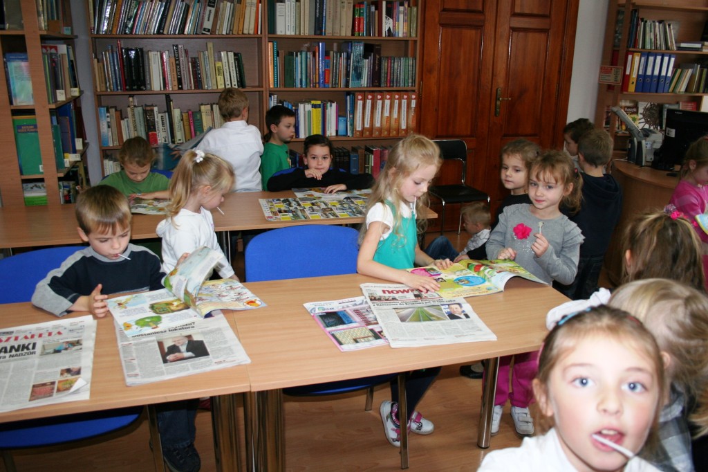 Biblioteka Publiczna uczciła Rok Juliana Tuwima we współpracy z Panią Grażyną Koszałka, opiekunką „zerówki” w Publicznej Szkole Podstawowej nr 1. Spotkanie, w którym uczestniczyły maluchy z Przedszkola Miejskiego i rodzice uczniów oddziału przedszkolnego rozpoczęliśmy krótkim programem artystycznym – „Rzepką” w wykonaniu dzieci oraz recytację wierszy. Przedszkolaki bez specjalnej tremy odgrywały poszczególne scenki. Natomiast recytatorzy przedstawiali własną interpretację utworów Tuwima. Kolejnym punktem programu było wysłuchanie wiersza „Lokomotywa” oraz quiz ze znajomości wierszy i ich bohaterów. Po występach i zabawach udaliśmy się do biblioteki, gdzie dzieci oglądały książki i czasopisma dla dzieci. Na zakończenie maluchy otrzymały słodkie co nieco na drogę i kolorowy pociąg wraz ze swoimi pasażerami odjechał do przedszkola i szkoły.