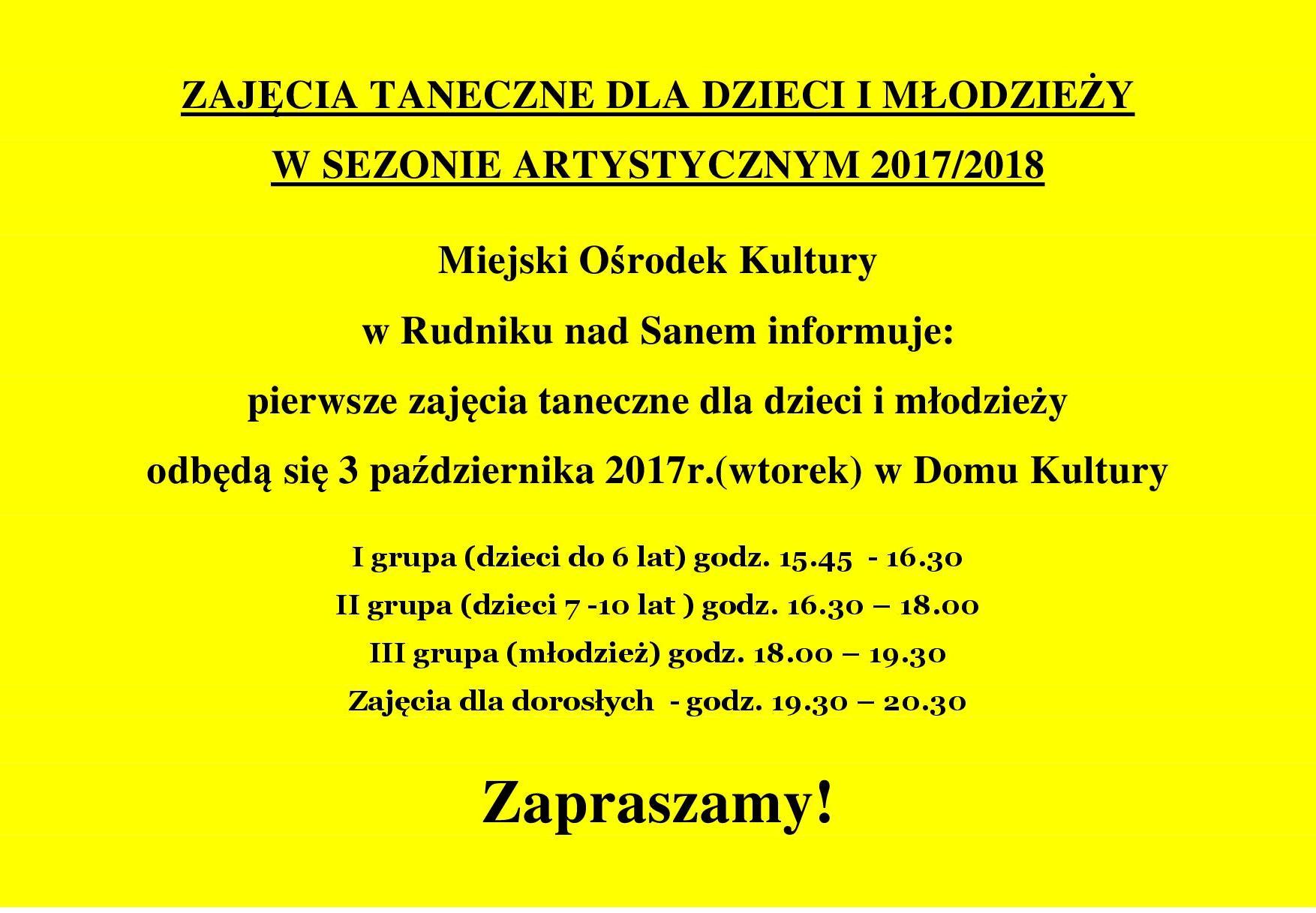 Zajęcia taneczne w sezonie artystycznym 2017/2018 w Miejskim Ośrodku Kultury w Rudniku nad Sanem