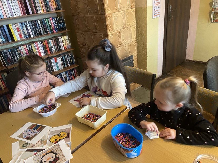 W dniu 31 stycznia 2024 r. w Filii bibliotecznej w Przędzelu odbyły się pierwsze zajęcia w ramach ferii zimowych, podczas których dzieci wykonały z koralików pyssla ciekawe wzory.
