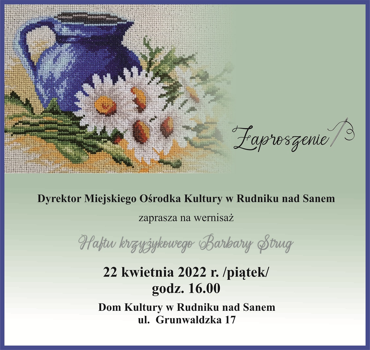 Zapraszamy na wernisaż haftu krzyżykowego Barbary Strug