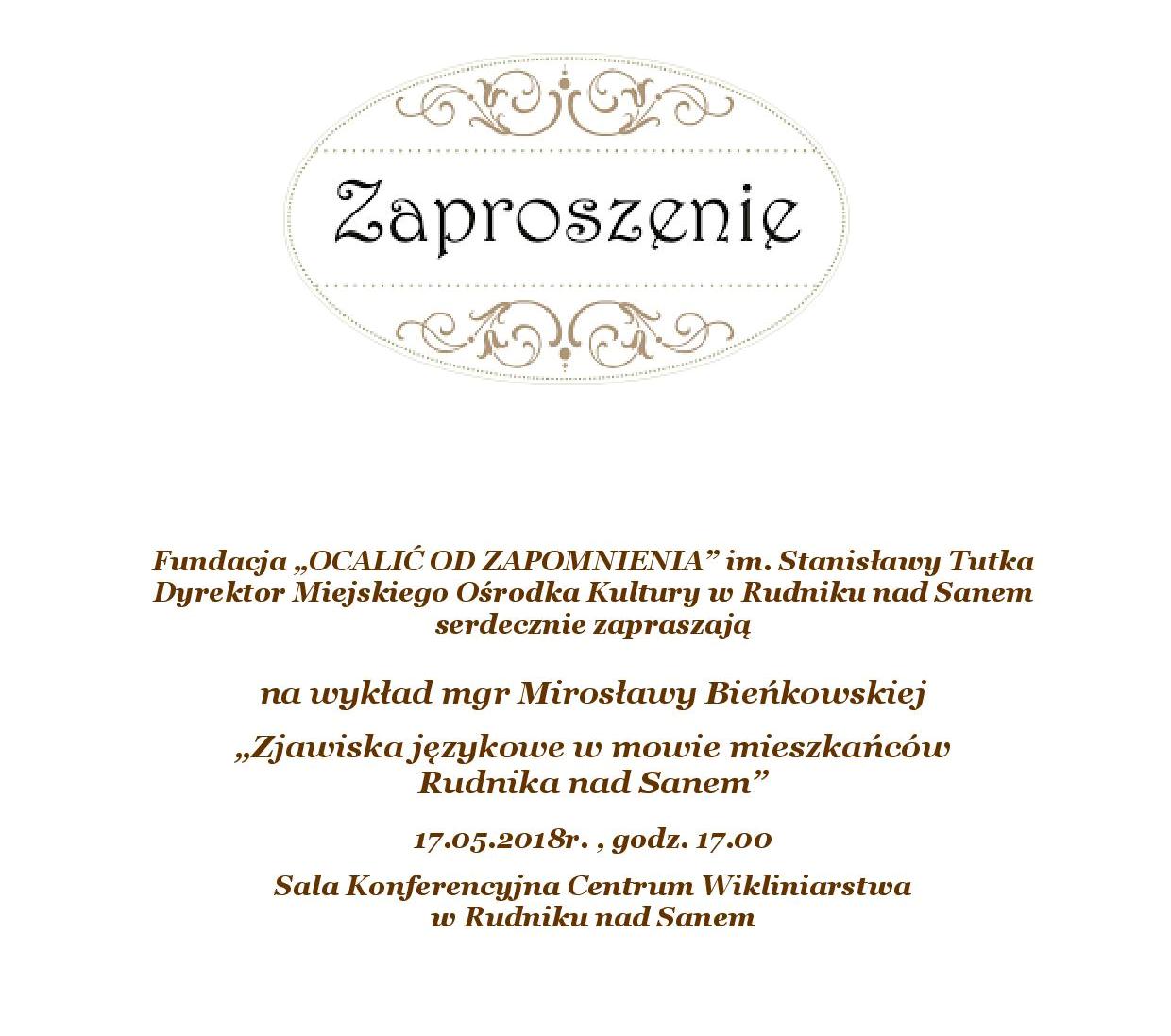 Zapraszamy na wykład mgr Mirosławy Bieńkowskiej „Zjawiska językowe w mowie mieszkańców Rudnika nad Sanem”