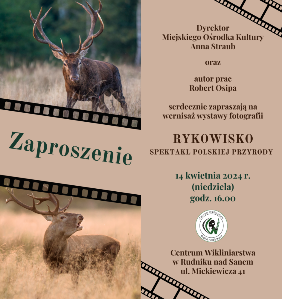 Serdecznie zapraszamy na wernisaż wystawy fotografii „Rykowisko – spektakl polskiej przyrody” Roberta Osipy.
