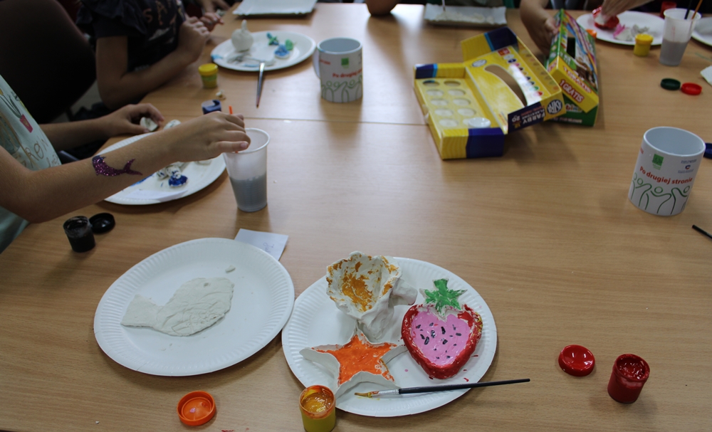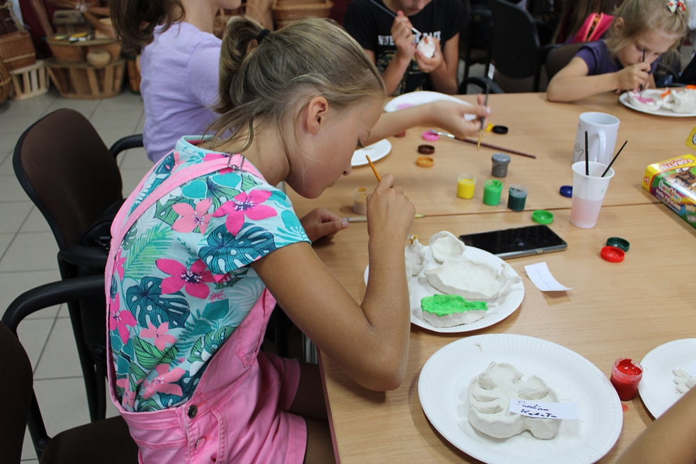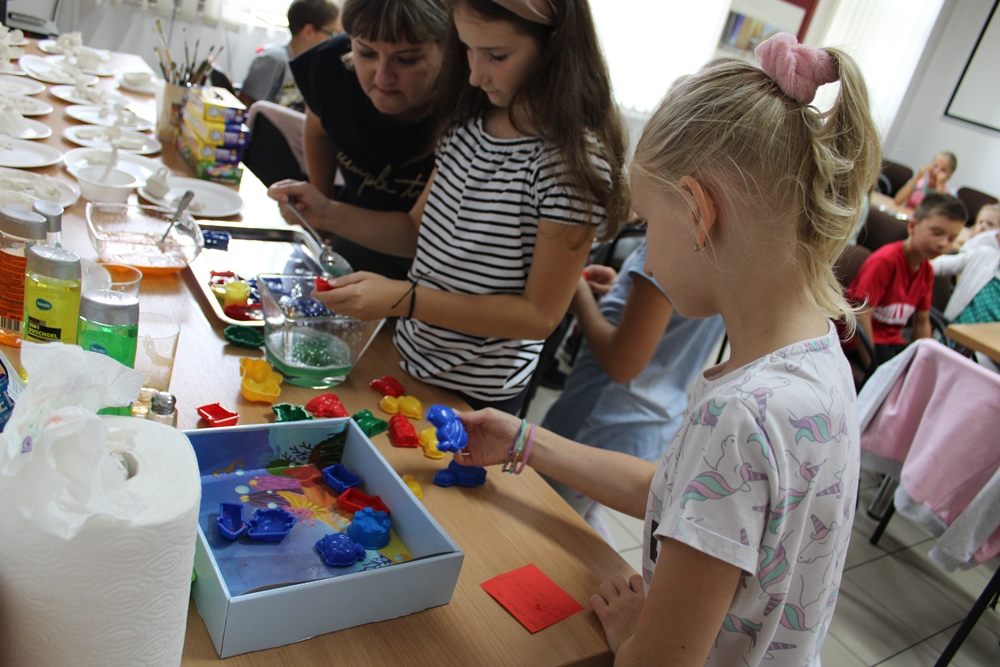 17.08.2021r. odbyły się warsztaty artystyczne, podczas których robiliśmy żelove mydełka i kontynuowaliśmy warsztaty z masy ceramicznej.