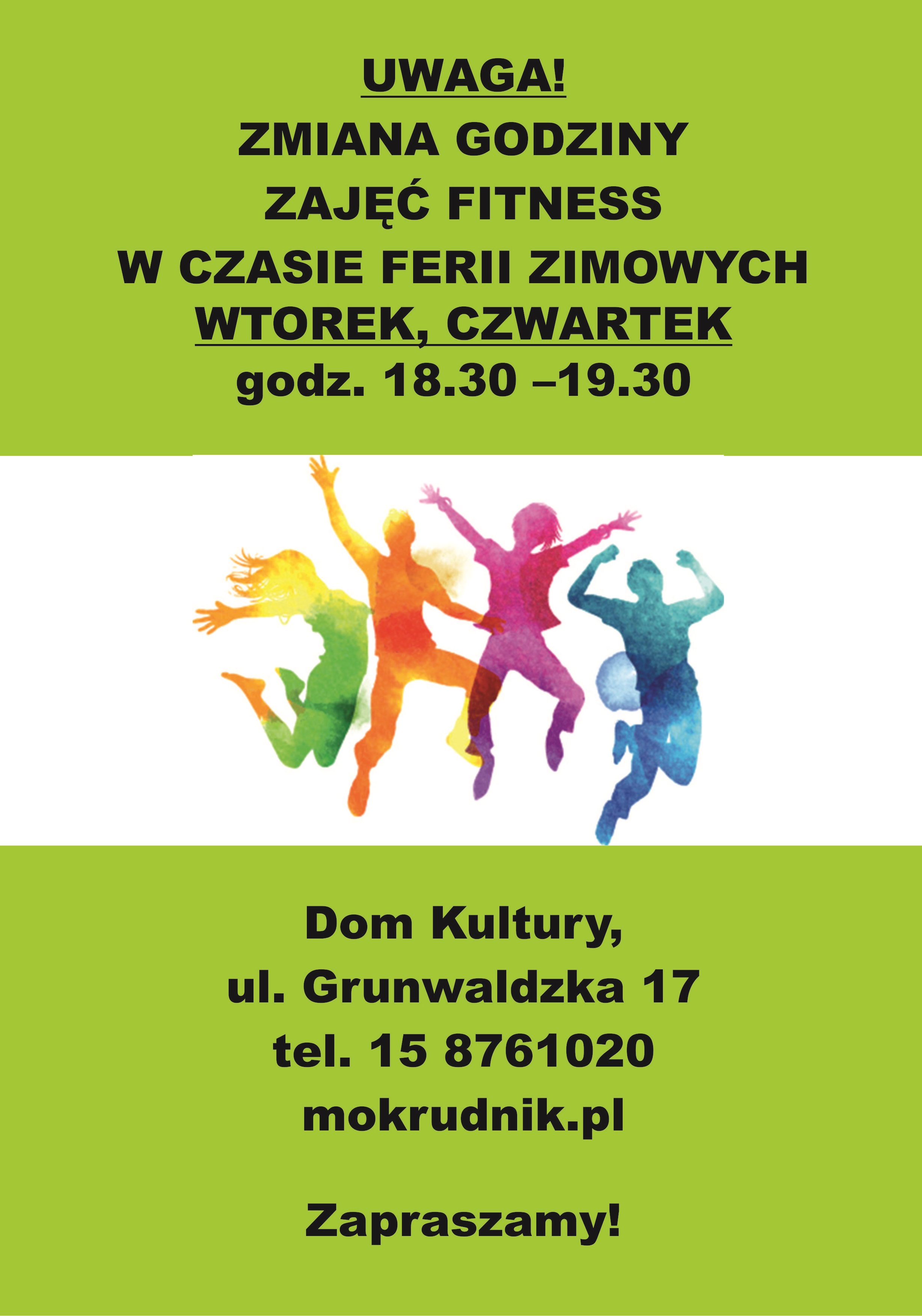 ZMIANA GODZINY ZAJĘĆ FITNESS W CZASIE FERII ZIMOWYCH